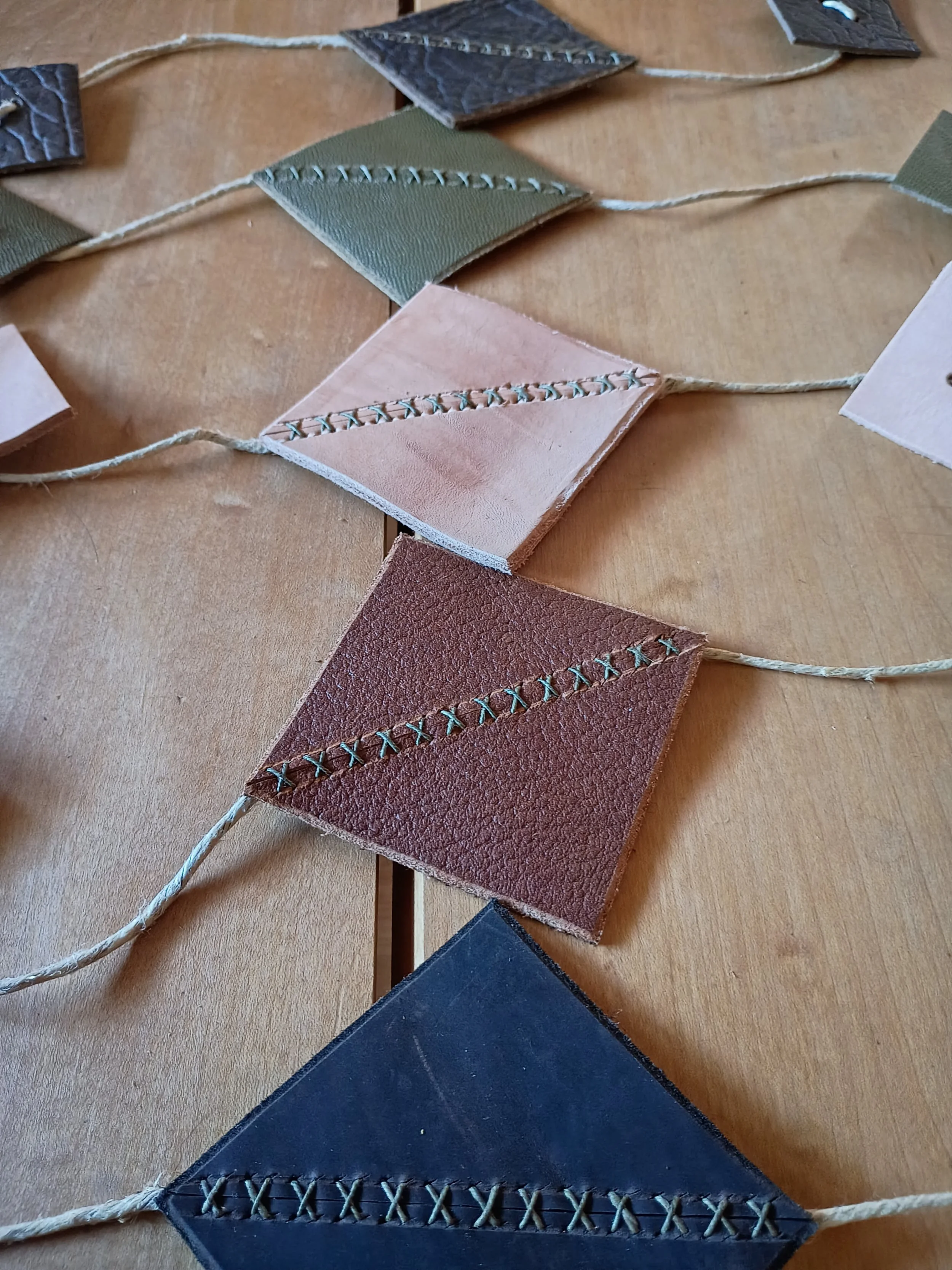 Shop Hand-stitched Leather Diamond Garland $30.00 Hand-stitched Leather Diamond Garland $30.00 Hand-stitched Leather Diamond Ornament $8.00 Hand-Dyed Hardcover Journal $42.00